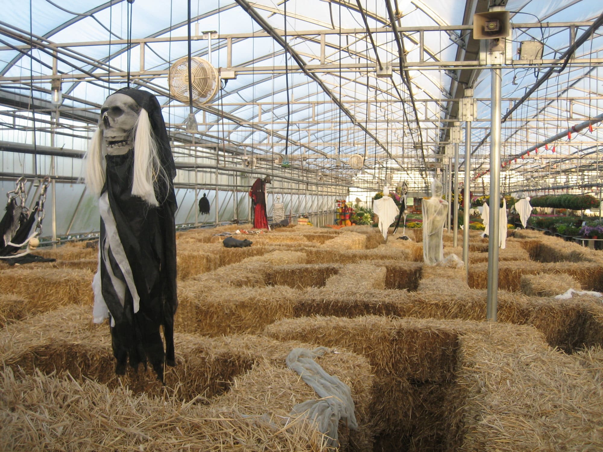For the younger kids under 42” tall, we will continue our tradition with our bouncy pumpkin. They can wear off some energy bouncing to their hearts content. Everyone loves to feed the goats that visit us for the month too. We also bring in the straw and set up a spooky straw maze in the greenhouse for the whole family. There will be a nice fall photo spot where you may want to take a photo or two as well.