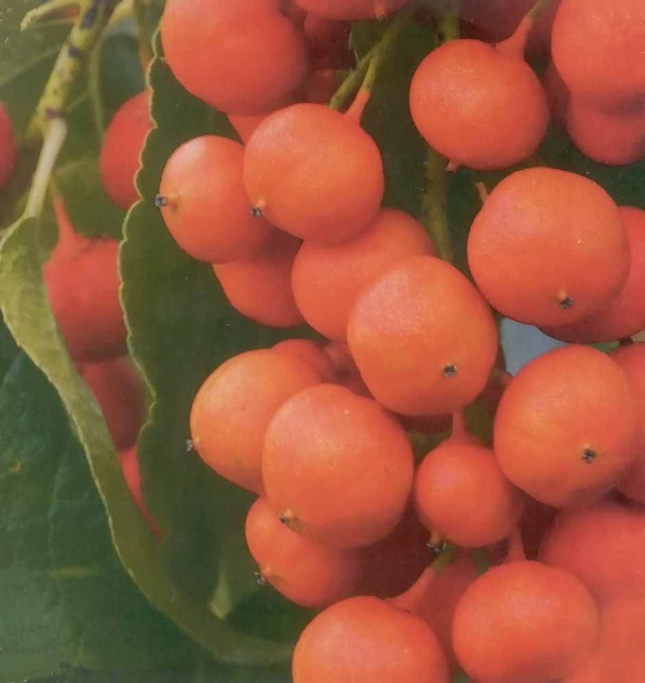 American Bittersweet is a native of our northern forests and is an old but still popular favorite vine. It is a high-climbing twiner that matures to 25 feet or more and it winter hardy to ̵ 50º. It has rich green foliage and the stems thicken year by year and should be grown on a strong support. The plant produces a panicle shaped flower that blooms in June. The orange-red fruit ripens as the leaves fall off usually after the first hard frost in October. The berries can last all winter even when they are brought into the house to be used as decorations.